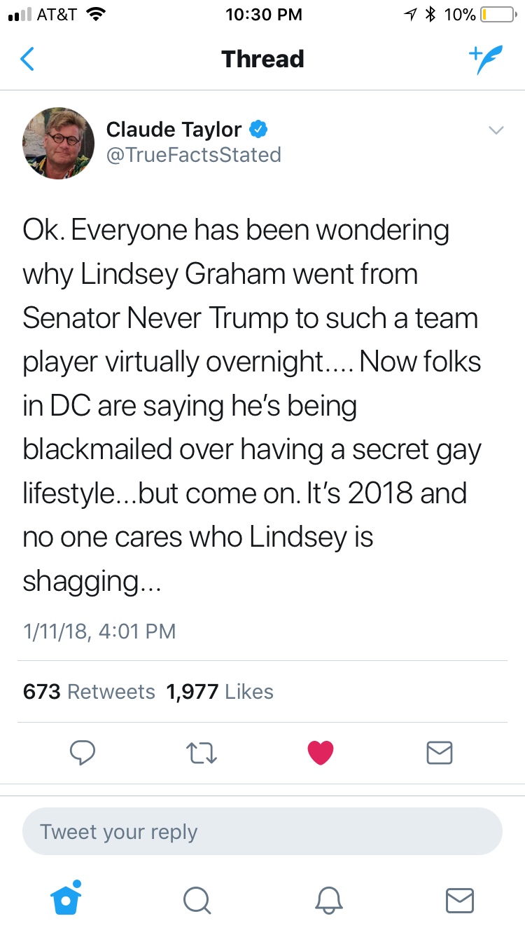 Below are some screenshots from Claude about Lindsey Graham. There have been rumors around for a while that he’s secretly gay, and the recent scuttlebutt is that Trump confronted him with Kompromat while they were golfing.